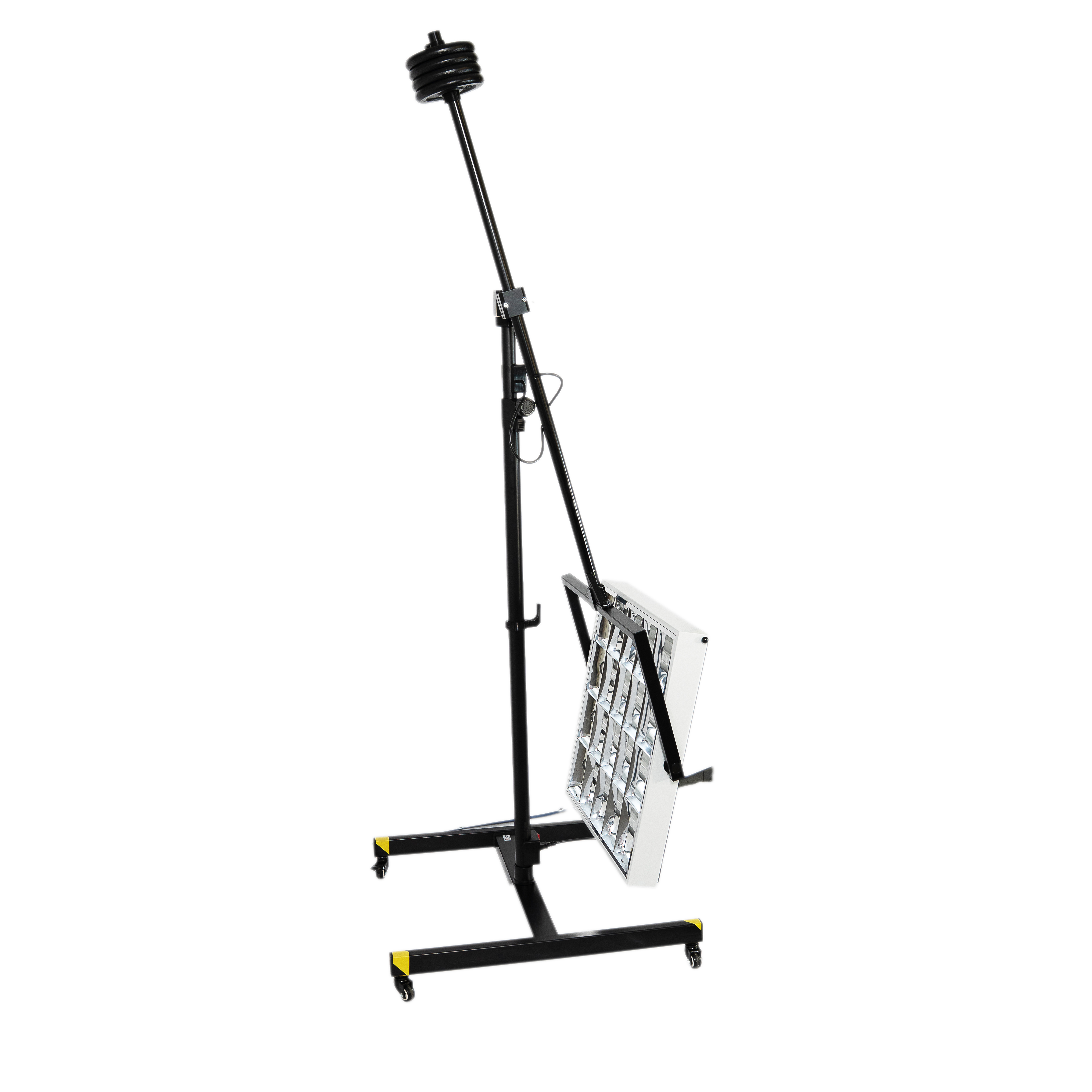 A lámpatest fémvázzal rendelkezik, alumínium reflektorral, mely acél állványra szerelt, görgőkkel ellátva. A lámpatest minden irányban teljesen rugalmasan használható, magassága állítható. A lámpa helyzete vízszintes és függőleges síkban is változtatható, dönthető minden irányba.